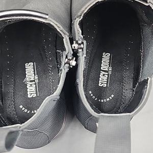 Stacy Adams Oakhurst boots in a sleek black color size 11. These ankle boots feature a chukka style with a side zipper closure, making them easy to slip on and off. The synthetic upper material and standard shoe width provide comfort and durability for year-round wear. The boots also come with memory foam features for added support and cushioning.