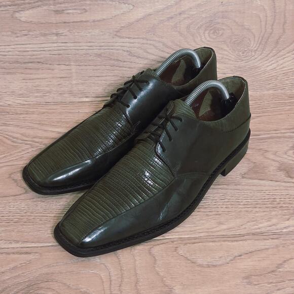 Stacy Adams Olive Green Leather Derby Dress Shoes Mens Size 9.5M Square Toe