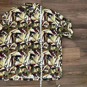 Stacy Adams Sz 5XL Mens Button Shirt Linen Blend Abstract Relaxed Casual Beach