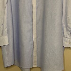 Stacy Adams Shirt Mens 19 36/37 Long Sleeve Button Up Square Cuffs Blue Stripe