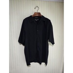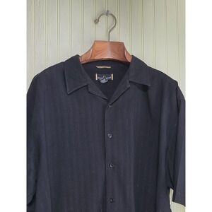 Stacy Adams Shirt Mens 2XL Black Button Up Short Sleeve Embroidered SA Logo Polyester