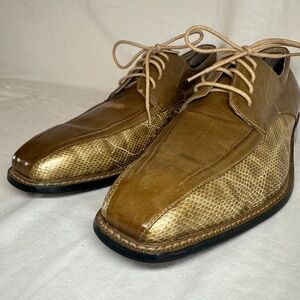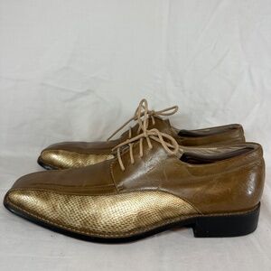 Stacy Adams Shoes Mens Size 10.5 Brown Gold Snake Embossed Derby Dress 24176-20