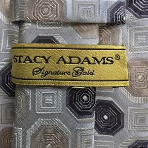 Stacy Adams Signature Gold Hexagonal Pattern Tie in Gray and Tan EUC