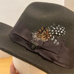Stacy Adams Wool Fedora Hat Brown Felt Feather Ribbon Women’s Size M