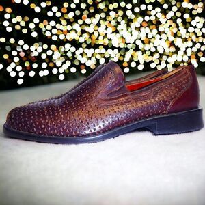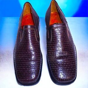 Stacy Adams mens brown leather triangle lattice dressy slip on loafers