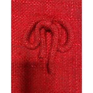 This vintage sheath dress is made of a woven fabric with a nubby texture. See close up photo. Metal zipper closure at the back. The area around the collar and underarms is lined. The hook portion of the hook and eye closure at the top back above the zipper is missing. Please note this measures as a size small even though it is tagged size 12. See below.