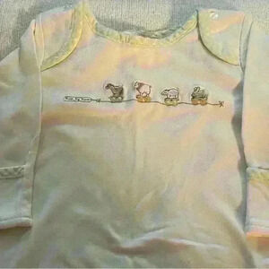 Stacy Claire Boyd 0 - 6 months swaddle button bottom embroidered decal on top with sewn in buttons cuffs fold in. White w/ light green neck line Never worn