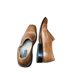 Experience the perfect blend of comfort and style with Stacy Adams Hillman Loafers. Size 12M in a rich, cognac brown leather with a sleek bike toe design, ideal for workwear.