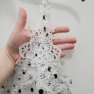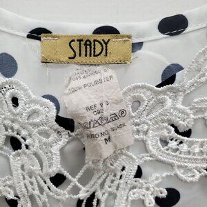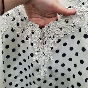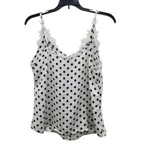Stady Women's White Black Polka Dot Print Lace Trim Cami Shell Camisole Size M