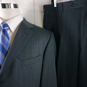 Stafford 44R Wool 3 Button Gray Striped 2pc Suit 42x30.5 Pleated