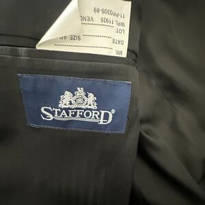 Brand: Stafford (Vintage) Item: Blazer / Sport Jacket Size: 44L (Long) Color/Pattern: Solid black Material: 100% Woven Wool Key Design Details:Notch lapel, Four-button sleeve,Single-breasted,front Inner pockets Fit: Regular Occasions: Business meetings, formal events, casual outings Versatility: Suitable for year-round wear.