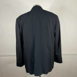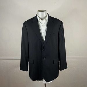 Stafford Blazer Mens 46R Solid Black Worsted WoolQuality used condition. Please check out the measurements before buying to ensure a perfect fit.