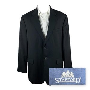 Stafford Blazer Mens 46R Solid Black Worsted Wool