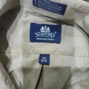 Introducing a classic button-down shirt from Stafford, perfect for any occasion. This shirt features a stylish plaid pattern in beige, with a regular fit and long sleeves. The collar is also button-down and the closure is a classic button. Made from comfortable cotton material, this shirt is sure to be a favorite in your wardrobe. The size is 36/37 and it is suitable for men. This shirt is ideal for casual events or even for a day at the office. Add this timeless piece to your collection today!