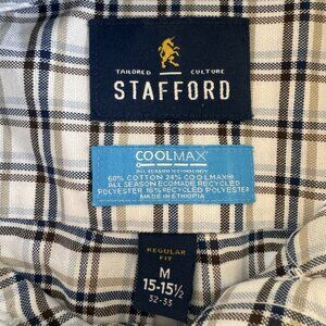 Stafford Coolmax Shirt Men’s Medium Regular Fit Long Sleeve Button Down Plaid
