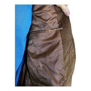 Stafford Essentials Chocolate Brown Corduroy Classic Fit Blazer with Sueded Elbow Patches and Paisley Lining.