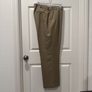 Stafford Essentials Men's Classic Fit Flat Front Tan Polyester Pants Tag 40x32