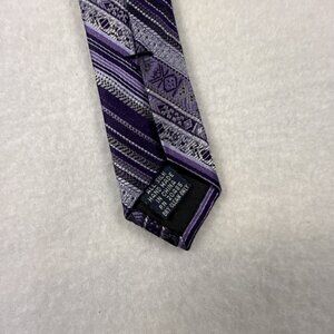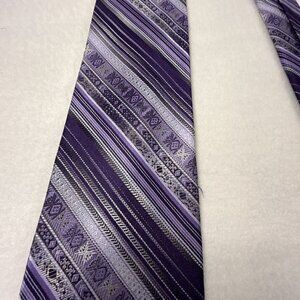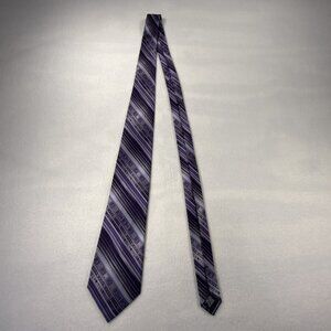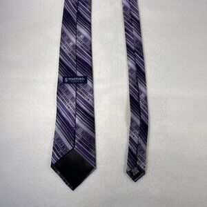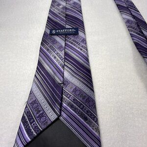 Stafford Essentials Men's Necktie Tie Silk Purple Gray Black Stripe 58"