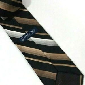 Stafford Essentials Men's Tie 3.75 in X 57 in Silver Black Copper Stripe