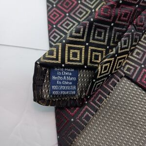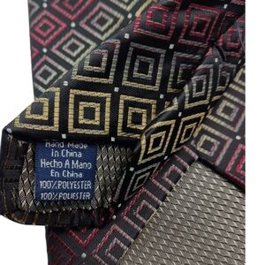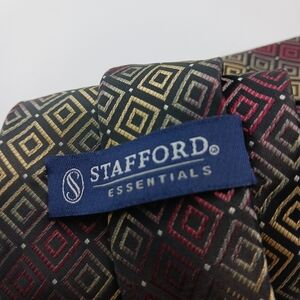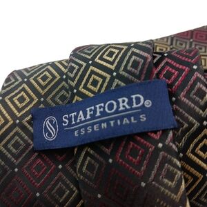 Stafford Essentials Mens Tie Black Maroon Beige Geometric 58" Classic Wide