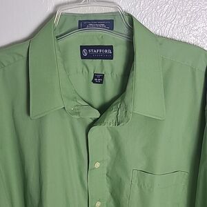 Stafford Essentials Green Longsleeve Buttondown Shirt, Size 18-18 1/2, 34/35