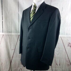 Stafford Executive 44L 100% Wool 2 Button Gray Striped Suit Blazer Jacket
