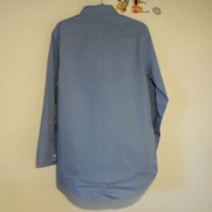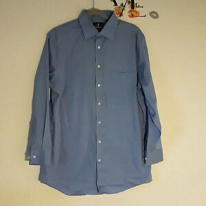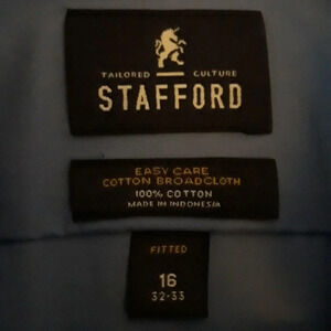 In excellent condition. Stafford fitted blue long sleeve button down dress shirt with collar and front pocket. 100% cotton. Size 16 32-33.