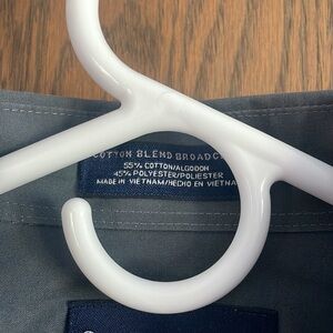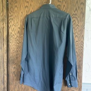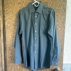 This Essentials dress shirt in a versatile gray shade is crafted from a smooth, business-appropriate fabric, offering a crisp and professional appearance. Ideal for formal occasions, it features a traditional point collar and standard cuffs, making it a staple in any professional wardrobe.