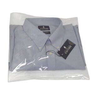 Stafford JC Penney Travel Lightweight Regular Fit Wrinkle Free Oxford Button Down Blue Shirt Size 18 Short Sleeve