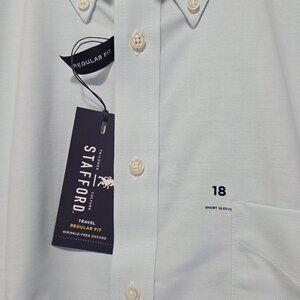 Stafford JC Penney Travel Regular Fit Wrinkle Free Oxford Button Down Oslo Blue Shirt Men's Size 18 Short Sleeve