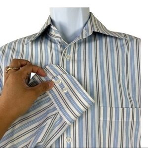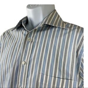 Stafford Men Casual Shirt Buttons Down Striped Blue White Sz 15 1/2 32-33