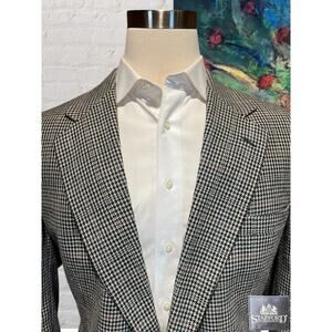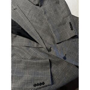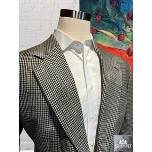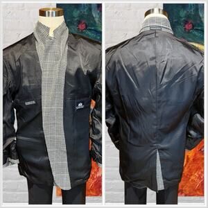 Stafford Mens 46R Black Beige Burgundy Houndstooth Plaid Blazer Sport Jacket
