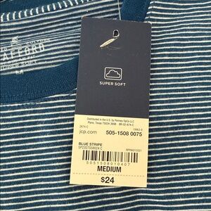 Soft and comfy men’s blue striped t-shirt with a comfortable fit. New with tags, size Medium