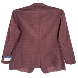 This Stafford Corduroy Sport Coat is crafted for the Big & Tall man, featuring a sophisticated burgundy check pattern. The 100% cotton it offers comfort and durability. The coat is tailored for a 60 Long fit, offering a polished and professional appearance.
