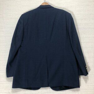 This is a Stafford men's navy blue wool blazer in size 44R. It is a 2 piece style and is designed for regular size. Made of wool, this blazer is suitable for formal or professional occasions.