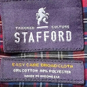 Stafford Men's Red Plaid Button Down Shirt | 17-1/2 (36-37) | Long Sleeve