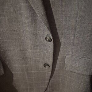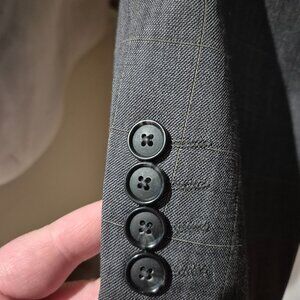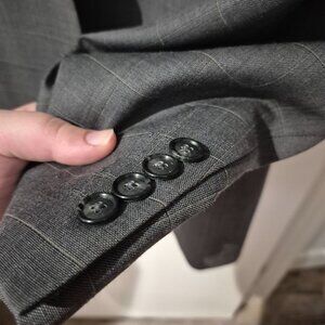 Dark grey, excellent condition, no snags or stains that I could find. Jacket is 48 Regular, pants are 40x30. No buttons missing, probably needs a dry clean, it has been sitting in a closet for a while unworn