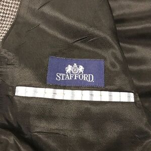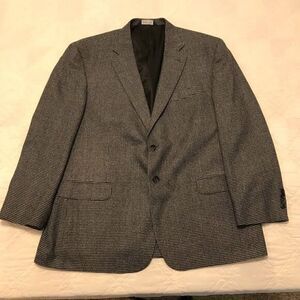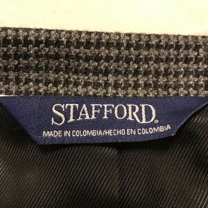 Stafford Merino Wool Sport Coat Mens 48R Classic Fit Grey Houndstooth Blazer