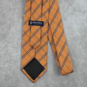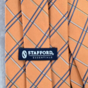 Stafford Orange Blue Stripe Plaid Tartan Geometric Executive Neck Tie Men's