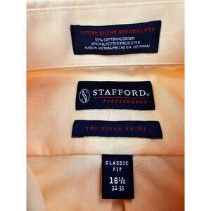 Stafford Performance Classic Fit Size 16.5 34-35 Peach Long Sleeve Mens Shirt