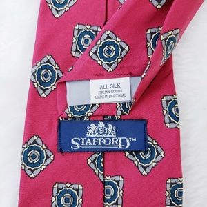 Stafford Red Geometric 100% Silk Men Necktie 57x3.75 - NWOT