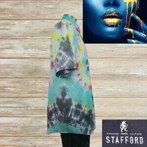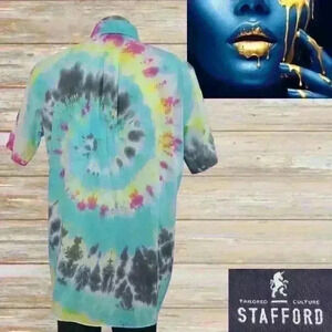 Stafford Regular Fit Men's Short-Sleeve Shirt Size 16 1/2 Colorful Tie Dye