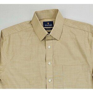 Stafford Regular Fit Signature Textured Slub Size Medium Men's Oatmeal L/S Shirt
