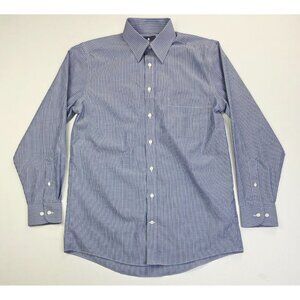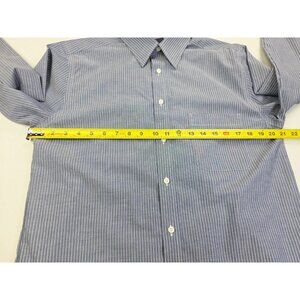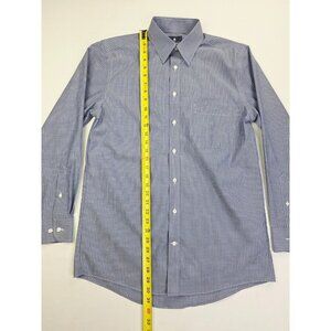 Stafford Regular Fit Size 15 32-33 Men Gray White Stripe Long Sleeve Super Shirt