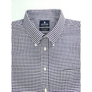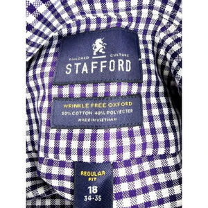Stafford Regular Fit Size 18 34-35 Men's White Plum Check Wrinkle Free Oxford
