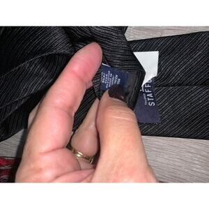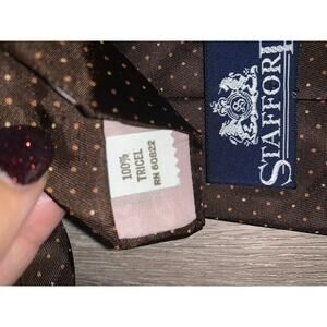 Keywords: Stafford, multicolor, men's set, silk, tricel, designer style, geometric pattern, professional theme, casual theme, classic width, classic length, adjustable features, one size, 4 piece set, pre-owned condition.