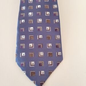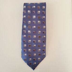 3.75" inches at widest point, Approx 60" Long, beautiful jewel tones of blue, purple with steel gray, white. Timeless pattern, and pairing options. NWT IMMACULATE CONDITION.