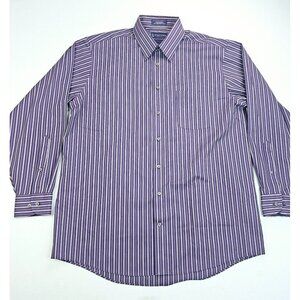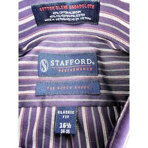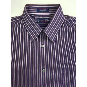 Stafford Size 16.5 34-35 Classic Fit Mens Plum Gray Red Stripe Performance Shirt