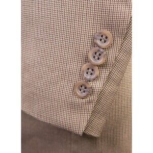 Stafford Sport Coat Blazer Mens 42L Beige Houndstooth Jacket Blazer Silk/Wool