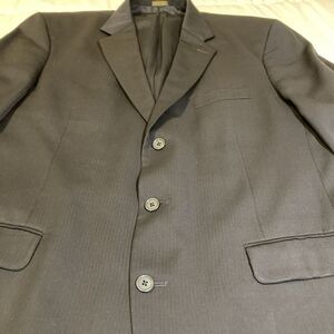 Pre-owned Suit Jacket/Blazer in Navy blue. There are two flaws that have been pictured. One on the inside chest pocket and one on the lower rear which could be easily mended.